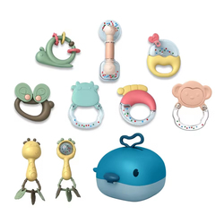 2024 bebé educación temprana Almacenamiento de dibujos animados mordedor de silicona juego de sonajero juguete ballena calmante sonajero de dentición juguete sensorial