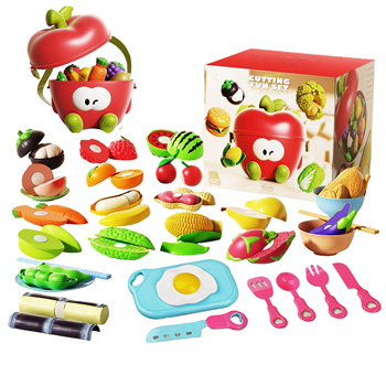 2025 enfants Offre Spéciale semblant jouer coupe fruits pomme stockage jouet Portable 33 pièces cuisine légumes fruits coupe modèle stockage jouet