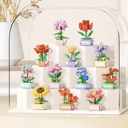 フラワーブーケ植木鉢セットおもちゃ2025キッズ用教育ひまわり植木鉢ブロック